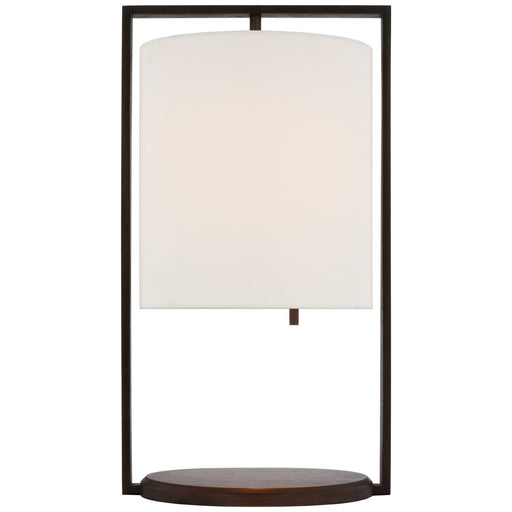 Details:Product Type: Accent LampsFinish: Warm Iron and Dark WalnutShade: 10" x 10" x 11.25" LinenDesigner: Ray BoothMeasurements:Width / Dia: 11.5...