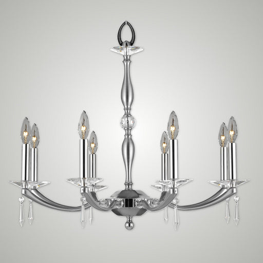 View full detailsAmerican Brass & Crystal CH5326-U-37G-38G-ST Eight Light Chandelier, Pewter with Polished Nickel
