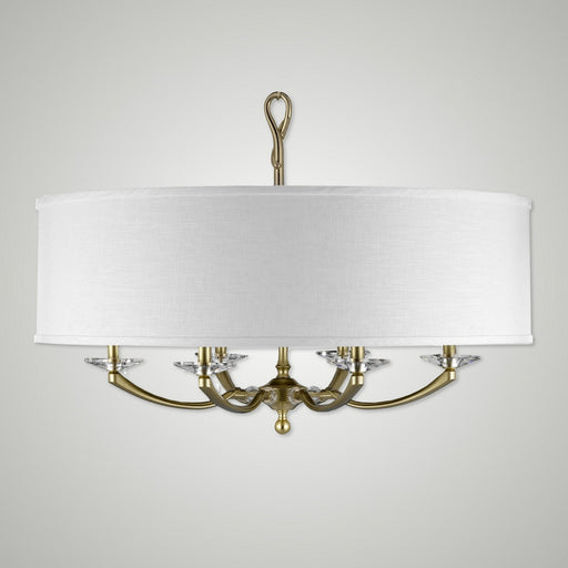 Details:Product Type: Drum ShadeFinish: Old BrassShade: Hard Linen Hard Back Fabric ShadeCrystal: G - Precision Clear Glacial Drop CrystalRooms: Di...