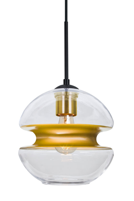The Juni 10 Pendant is composed of a transparent Gold glass cylinder, with an interesting bubble pattern blown randomly throughout the glass. The p...