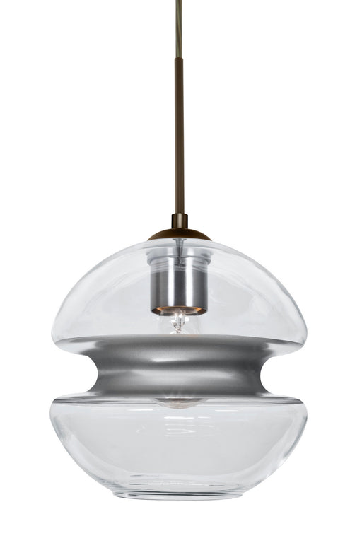 The transitional Hula 8 Pendant employs an impressive European glass shade with center radiused Silver band dividing an upper and lower transparent...