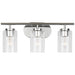 The Oslo three light vanity fixture in Chrome offers shadow-free lighting in your powder room, spa, or master bath room. The Oslo lighting collection by is a sleek design, with smooth and clean lines. The Clear Seeded glass adds to this collection's contemporary and minimalist character. Offered in Chrome, Brushed Nickel, Bronze and Midnight Black finishes, the collection includes nine-, five-, and three-light chandeliers, mini pendant, both flush and semi-flush ceiling fixtures, as well as one-, two-, three- and four-light wall/bath fixtures. Both incandescent lamping and ENERGY STAR-qualified LED lamping are available. All fixtures are California Title 24 compliant.