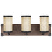 The Dunning three light vanity fixture in stardust provides abundant light for your bath vanity, while adding a layer of today's style to your interior design. Making a statement without overpowering the surrounding decor, the Dunning lighting collection by is a chic addition to a wide range of interiors. The bold design is inspired by farmhouse influences seen in the rustic rope detail highlighting the open, square frame which surrounds medium based lamps covered in Creme Parchment glass shades. The Dunning collection features a unique two-tone finish of Stardust on the overall metal structure, with the open frame in Cerused Oak finish. The full lighting collection features a three-light and five-light chandeliers, a one-light mini-pendant, a four-light island chandelier, a two-light flush mount, and one-light, two-light, three-light and four-light bath fixtures (all of which can mount up or down). Both incandescent lamping and ENERGY STAR-qualified LED lamping are available.