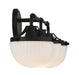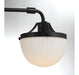 Decorate your bath with the vintage-inspired styling of the Meredith 3-light bath vanity light. White ribbed glass shades add a textural touch and provide bright yet comfortable illumination. Finished in matte black. 9.5" in height, 24" in width, extends 7.5" from the wall. Uses three standard size bulbs of up to 60 watts per bulb. Damp area rated.