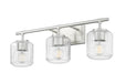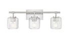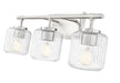 The radiant sparkle of clear ribbed glass creates dynamic energy for this modern three-light vanity bath light. Beautiful in a guest or primary en suite, it delivers fresh style with a brushed nickel finish over a clean-lined framework, delivering refined, timeless style to complement in any setting.
