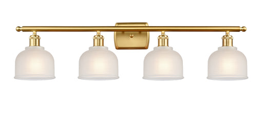 Dayton - 4 Light - 36 inch - Satin Gold - White Shade - Bath Vanity LightDetails:Product Type: Four LightsFinish: Satin GoldShade: White DaytonRoom...