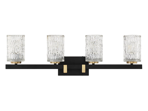 View full detailsSavoy House 8-1102-4-143 Four Light Bathroom Vanity, Matte Black with Warm Brass