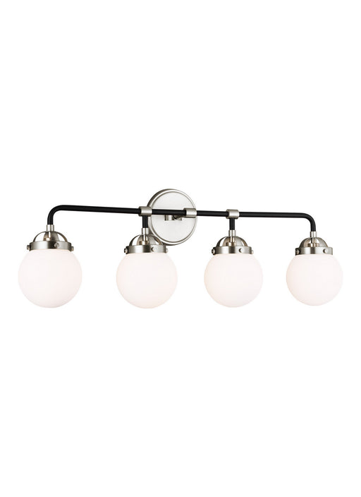 The Cafe four light vanity fixture in brushed nickel provides abundant light for your bath vanity, while adding a layer of today's style to your in...