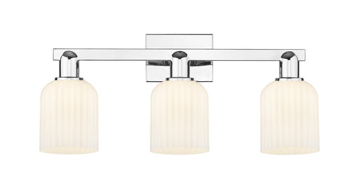 Fenton - 3 Light - 25 inch - Polished Chrome - Matte White Shade - Bath Vanity LightDetails:Product Type: Three LightsFinish: Polished ChromeShade:...