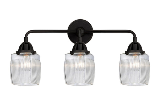 Colton - 3 Light - 24 inch - Matte Black - Clear Halophane Shade - Bath Vanity LightDetails:Product Type: Three LightsFinish: Matte BlackShade: Thi...