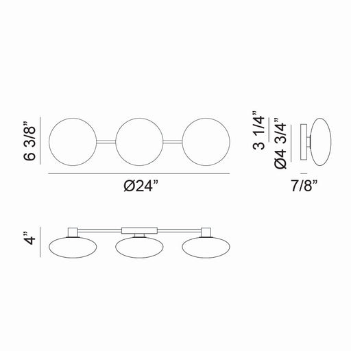 Details:Product Type: Three LightsFinish: Sand WhiteShade: WhiteMeasurements:Width / Dia: 24.00"Height: 8.00"Extension: 7.00"Canopy: 20"x5"x0.75"We...