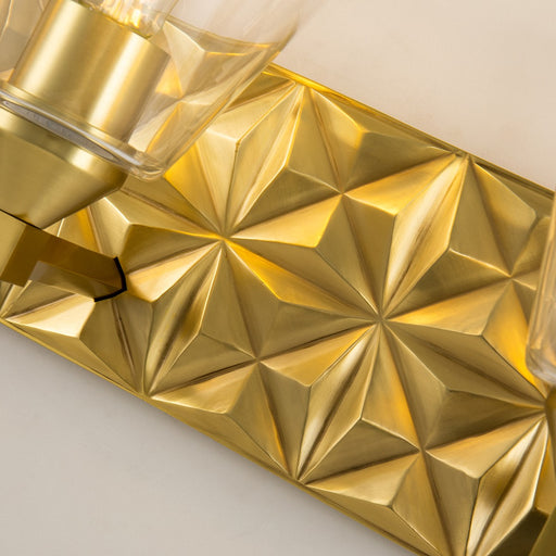 Ziggy 3 Lt Bath Bar in Lacquered Gold with striking geometric deisgn contrasted with the Opal glass shades creates a rich, stunning work.Details:Pr...