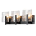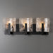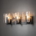 The Arc 3-Light Bath Sconce is the perfect to place above a mirror in a stylish single or double vanity bath environment. Featuring 3 of the Arc Collection's trademark thick convex panels of clear glass with embedded white freeform swirls, this wall sconce is available in Black, Oil Rubbed Bronze, Vintage Platinum, Soft Gold, Sterling and Modern Brass.