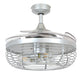 The Australian Original FANAWAY Carbondale in Gray Silver with Clear Blades is a patented, advanced ceiling fan with unique aesthetics and energy-efficient design. Switched off, the traditionally intrusive fan blades automatically retract and conceal, transforming the unit into a modern industrial pendant. It creates open space in the room environment, accumulates less dust, and is unobtrusive and versatile to visually integrate into all rooms of your home. The fan comes with 3 dimmable LED vintage bulbs, 3-speed remote control, winter/summer mode, and a wall-mount for you to personalize your experience. The star of this Fanaway design is the light kit which has a hand-crafted industrial cage. The 3 dimmable vintage LED bulbs complete the industrial modern feel and are sure to add that designer look to any room in your home. Additional downrods lengths sold separately: 12``, 24`` and 36`` - 51105112, 51105124, 51105136. US Patent 8317470, US Patent 8807938, US Patent 8790085, US Patent 9255584, US Patent 8851841. Set includes: One (1) ceiling fan with remote control. Material: Metal (fan housing) and PC - Polycarbonate (blades) . Finish: Gray Silver. Ceiling fan dimensions: 17.13 inches high x 48 inches wide x 48 inches deep. Blade dimensions: 17.7 inches length x 4.1 inches width, Blade color: Clear. Winter/Summer mode manual switch. Motor size (inch): D153 x 15. Airflow(CFM): 3208. Number of speed: 3. Power Consumption Average(wattage): 60. Motor Wattage: 60W. Include 3X4.5Watt E26 Base ST19 LED Light Bulbs included, each bulb 2700K 360LM. Socket: E26, Dimmable. RPM H/M/L (motor speed): 223/163/122. Fan Watts when used at high speed: 60W. Voltage: 110V. Ceiling Fandimensions: 17.13 inches high x 48 inches wide x 48 inches deep. This product will ship to you in one (1) box. Accessories pictured are NOT included. Assembly required.