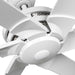 The hassles and headaches of the day fade away under the relaxing airflow created by this ceiling fan. Six expansive aluminum blades with decorative winglets stretch out from the center. The fan is coated in a satin white finish with complementary highlights to create a perfect design for your home.