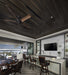 A picture of modern design, the functional minimalism of the Antique Bronze Ellwood 68 inch ceiling fan is a product of advanced design. Five long and graceful blades made of carved wood move air with remarkable efficiency. A remote with batteries is included - and controls full range dimming and fan speed capabilities.