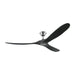 The Maverick 70 in Matte Black w Matte Black Blades features a 85.0 X 28.0 6 speed motor with a Thirteen degree blade pitch. With a sleek modern silhouette, a DC motor and super energy-efficiency, the 70" Maverick Max ceiling fan from features softly rounded blades and elegantly simple housing. Maverick Max features a 3-blade design that delivers a distinct profile and incredible airflow for living rooms, great rooms or outdoor covered areas. It includes a hand-held remote with six speeds and reverse, and is available in six distinct finish options: Brushed Steel housing with Dark Walnut blades, Brushed Steel housing with Koa blades, Matte Black housing with Dark Walnut Blades, Aged Pewter housing with Light Grey Weathered Oak blades, Matte Black housing with Matte Black blades and Matte White housing with Matte White blades. All versions feature beautiful hand-carved, balsa wood blades. ENERGY STAR qualified. Maverick fans are damp-rated, and may be used indoors or in covered areas.