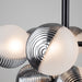The Bolla Collection radiates unique allure through its innovative design, seamlessly combining half-acid white and half-ribbed smoke glass spheres. The chandelier's interplay of textures and tones establishes a visually striking focal point, effortlessly merging contemporary aesthetics with enduring charm. This unique glassware is complimented with a semi gloss black frame. Single light wall sconce shown. 13 light 3 tier chandelier shown. (height adjustable with rods and built in hangstraight for sloped ceilings)