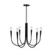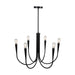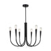 The Bronte Collection chandelier presents a classic design with tapered arms, accentuated by a semi-gloss black frame that exudes a touch of modern sophistication. 6 lite 25.5" diameter chandelier shown. (Also available in a brushed brass finish)