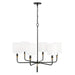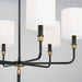 The striking contrast of the Glossy Black frame with white fabric shades gives a perfectly polished look to the Beckham 6-Light Chandelier. The solid metal tassel detail is accented with Aged Brass loops for a sleek silhouette that is both bold and refined.