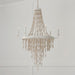 A natural romance. The Carissa 6-Light Chandelier brings showstopping style to any space with the cascading, artisan-crafted, white-washed eucalyptus wood coupled with the hand-painted Organic White finish. The natural pieces of wood are drilled and strung on white cotton rope to create this unique beaded look that is perfectly suited for boho, coastal and modern organic designs.