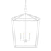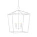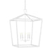 The Denison White Large Chandelier is a hammered wrought-iron fixture in a gesso white finish. This classic lantern shape has stood the test of time to make it one of our most popular offerings. A refined aspect of the design is the square that fastens the lantern to the chain. The pared-down profile and pale finish on this version makes it perfect for coastal aesthetics.
