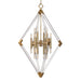 A mid-century candle cluster is set within an acrylic diamond frame with metal accents. A diamond loop strengthens the unity of the design. Eight-light versions present a pleasing symmetry. Lyons adds a splash of cool glamour to any space it adorns.