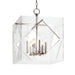 The pleasing simplicity of Travis`s cube shape with diamond cutaway, along with its sophisticated contrast of materialsâacrylic and metalâmake it a perennial darling. Its transparent sheen allows you to see various features of the room while its shapes make a playful design impact. By using modern materials on a tightly scaled chandelir, Travis offers a postmodern take on a Hollywood Regency style.