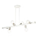Simplicity and attention to detail are the key elements of the Bannister collection. The dimensional form, exposed bulbs and combination of finishes adds a playful mood to a contemporary or urban interior. This six-light asymmetrical linear chandelier design gives a new face to a kitchen or dining room. It is shown in a white finish with brushed nickel accents.