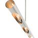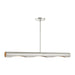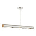The minimalistic Novato collection was inspired by the industrial landscape of metropolitan cities across Europe and Asia. Tubular shapes are interrupted by clever cutouts to create a visually interesting light distribution. This three-light brushed nickel finish linear chandelier will integrate into a contemporary, minimal, urban or sleek interior design setting.