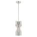 The minimalistic Acra collection was inspired by the industrial landscape of metropolitan cities across Europe and Asia. Delicate tubular shapes are interrupted by clever cutouts to create a visually interesting light distribution. This three-light brushed nickel finish pendant chandelier will integrate into a contemporary, minimal, urban or sleek interior design setting.