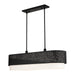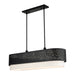 The Noria collection combines an intricate organic laser cut black finish steel frame surrounds an off-white fabric shade creating a casual warm light with a touch of nature vibe. This six-light linear chandelier will have a commanding presence in your home. Suspend it over a dining table, kitchen island or bar counter.