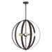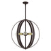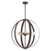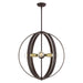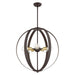 The Modesto collection hints at a casual mid-century modern vibe. It features steel straps that form beautiful circular shapes. The exposed bulbs and two-toned combination of finishes create a fashionable statement for today`s interiors. This five-light globe pendant chandelier is shown in a bronze finish with satin brass accents. It will look fantastic in your mid-century modern loft living room, dining room, kitchen or any contemporary style interior.