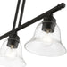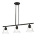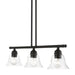 Whether it's style or practical lighting, this linear chandelier is the perfect addition to your kitchen island or dining room. This three-light island fixture from the Moreland Collection features clear hand-blown glass shades and is shown in a black finish. The clean graceful lines of this piece complement the shade, creating a transitional look that works well in most decors. Classic elegance combines with contemporary appeal to enhance any home in style.