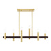 Adding to the eclectic and nostalgic feel, this funky linear chandelier is a traditional complement to many styles. An open linear form celebrates geometric interplay with clean, straight lines. Finished in satin brass with bronze accents, the Helsinki collection is ideal for modern or traditional homes.