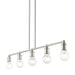 Simplicity and attention to detail are the key elements of the Lansdale collection. The dimensional form, exposed bulbs and combination of finishes adds a playful mood to a contemporary or urban interior. This five light linear chandelier design gives a new face to any interior. It is shown in a brushed nickel finish.