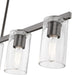 The Clarion transitional five light linear chandelier will bring posh sophistication to your decor. The angular frame and clear cylinder glass give this black chrome finish a sleek, contemporary look.