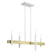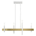 Clean lines and exposed bulb sockets make the Denmark collectionÃÂ perfect for your mid-mod or transitional decor. The eclectic look is perfect for spaces wanting an urban, minimalistic or industrial touch. With superb craftsmanship and affordable price, this white finish with antique brass finish accent four-light linear chandelier is sure to tastefully indulge your extravagant side.