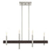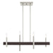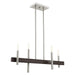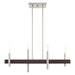 Clean lines and exposed bulb sockets make the Denmark collectionÃÂ perfect for your mid-mod or transitional decor. The eclectic look is perfect for spaces wanting an urban, minimalistic or industrial touch. With superb craftsmanship and affordable price, this brushed nickel finish with bronze finish accent four-light linear chandelier is sure to tastefully indulge your extravagant side.