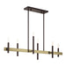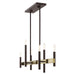 Clean lines and exposed bulb sockets make the Denmark collectionÃÂ perfect for your mid-mod or transitional decor. The eclectic look is perfect for spaces wanting an urban, minimalistic or industrial touch. With superb craftsmanship and affordable price, this bronze finish with antique brass finish accent six-light linear chandelier is sure to tastefully indulge your extravagant side.