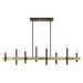 Clean lines and exposed bulb sockets make the Denmark collectionÃÂ perfect for your mid-mod or transitional decor. The eclectic look is perfect for spaces wanting an urban, minimalistic or industrial touch. With superb craftsmanship and affordable price, this bronze finish with antique brass finish accent eight-light linear chandelier is sure to tastefully indulge your extravagant side.