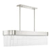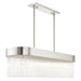 The Norwich six-light large linear crystal chandelier will become an attention-grabbing feature in your modern home decor. The brushed nickel finish graces the design with elegance and charm, providing a timeless and glamorous quality to any interior. The clear crystal rods give the sconce a sleek and attractive appearance.