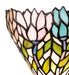 Stylized Wisteria flower clusters in Petal Pink, Amethyst Blue, and Dark Mauve with Jade Green leaves and Dark Mauve vines drape over the Beige background of the four inverted shades featured in this chandelier. The classic styling of Tiffany stained glass and soft pastel colors will add charm to any room. The stunning shades are made of hand-cut glass using the famous Meyda Tiffany copperfoil construction technique. This lighting fixture is complemented with authentic Revival-styled Brass Hardware in a warm Craftsman Brown finish. The luminaire is inspired by flowers found in a variety of gardens, from the Gibbs Gardens in Ball Ground, Georgia, to the Minnesota Landscape Arboretum in Chaska, Minnesota. The Wisteria Pendant is included in our American-designed, handcrafted Stained Glass Lighting Collection. UL & cUL listed for dry and damp locations. Each shade is a unique work of art with color variations based on natural ingredients inherent in the glass.