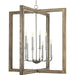 The coastal-inspired Turnbury pendant features a solid wood frame surrounded with hand-painted, galvanized metal fittings. The distressed pine frame finish is reminiscent of driftwood that has been weathered in the sun.
