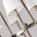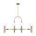The Katie eight light billiard island chandelier in time worn brass features leather straps suspended from the chain to round out the design of this timeless series.