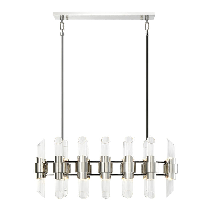 24 Duo Light 36" Linear Chandelier with Clear Fluted Up and Down Glass Shades within a Decorative Polished Nickel Finished Cathedral Metal Frame.