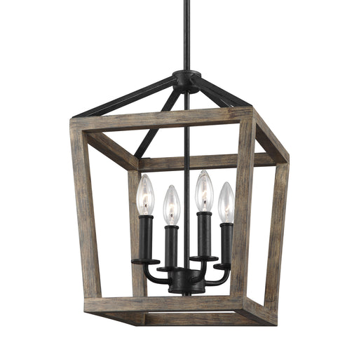 View full detailsVisual Comfort Studio F3190/4WOW/AF Four Light Chandelier, Weathered Oak Wood / Antique Forged Iron
