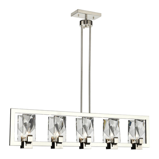 5-Light 46" Sleek Linear Dining Chandelier with Clear Crafted Rectangular Crystals and Heavy Gauge Metal Details in Polished Nickel Finish.Details:...