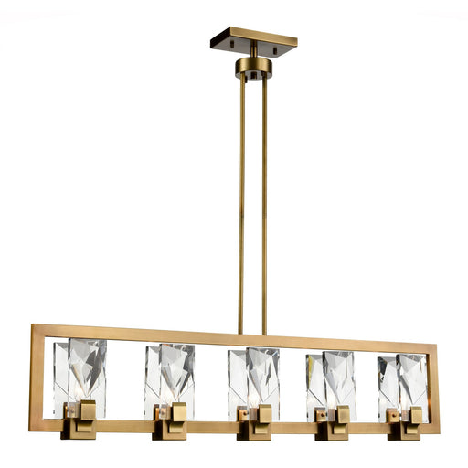 5-Light 46" Sleek Linear Dining Chandelier with Clear Crafted Rectangular Crystals and Heavy Gauge Metal Details in Aged Brass Finish.Details:Produ...