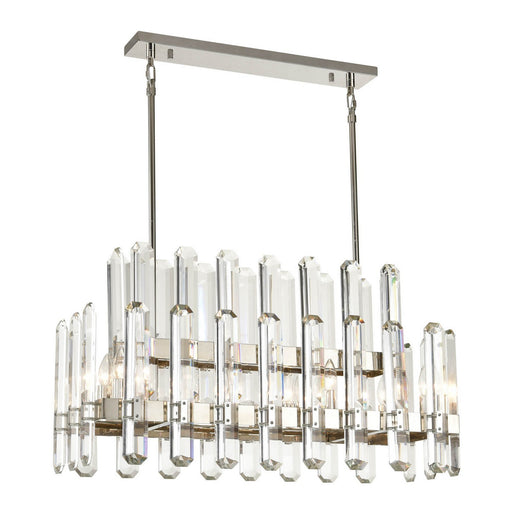 12-Light 40" Oval Contemporary Linear Chandelier with Solid Clear Glass Cylinders Placed within Decorative Polished Nickel Frame.Details:Product Ty...
